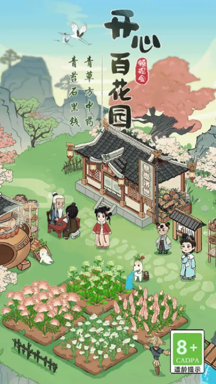 开心百花园安卓版是卡通风格休闲游戏。玩家穿越至古韵百草园当园主,种植药材花草。有多样玩法,如完成订单赚收益,能解锁图鉴、收集道具。融合剧情,画风精美,可邀好友共建花海,新人能领红包提现。