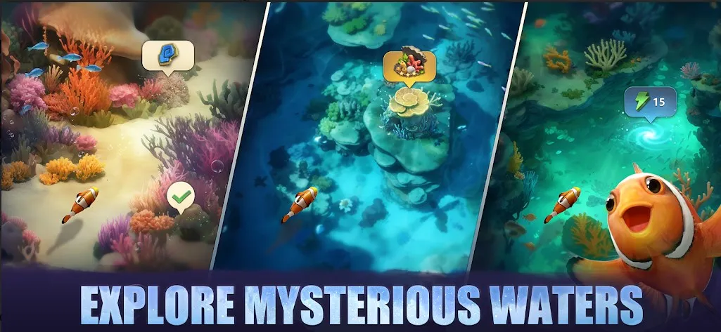 自由探索:轻松冒险闯关,深入神秘水域,自由探索,发掘遗失的宝藏,邂逅未知的海洋生物。