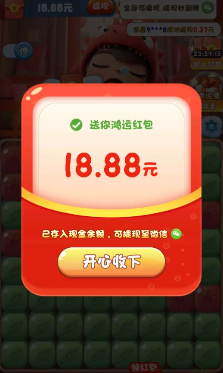 玩法便捷通俗易懂,通过多个颜色图形连击即可消除并获得积分奖励,更能不断进行消除任务获取掉落的红包奖励,轻松赚零花。