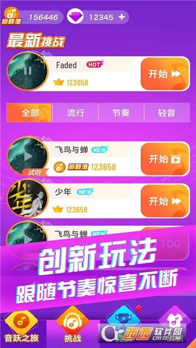 3、音乐类型多样,包括流行和轻音乐,各种曲目带来不同的节奏和难度,满足对各种音乐风格的体验需求。