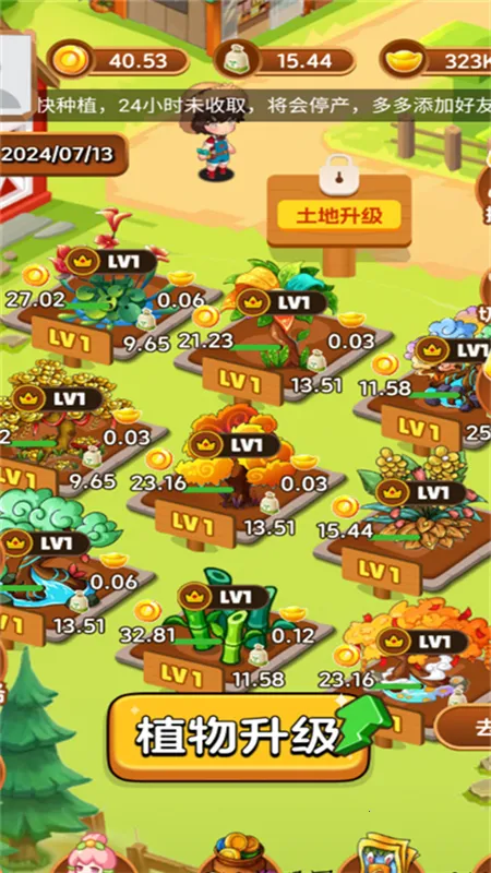 整个玩法简单高效,在线就能升级土地和肥料,助力更好地种植挣钱。