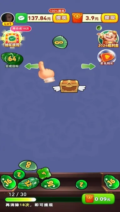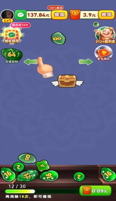 翡翠大富豪2025最新版本,以消除拿红包为特色。游戏中通过完成多种任务、进行思维合成解锁挑战,收获高点数。玩法类似2048浅显易懂,操作简单,滑动屏幕即可。还有一次性消除、整合元素等亮点,带来冒险解压乐趣。