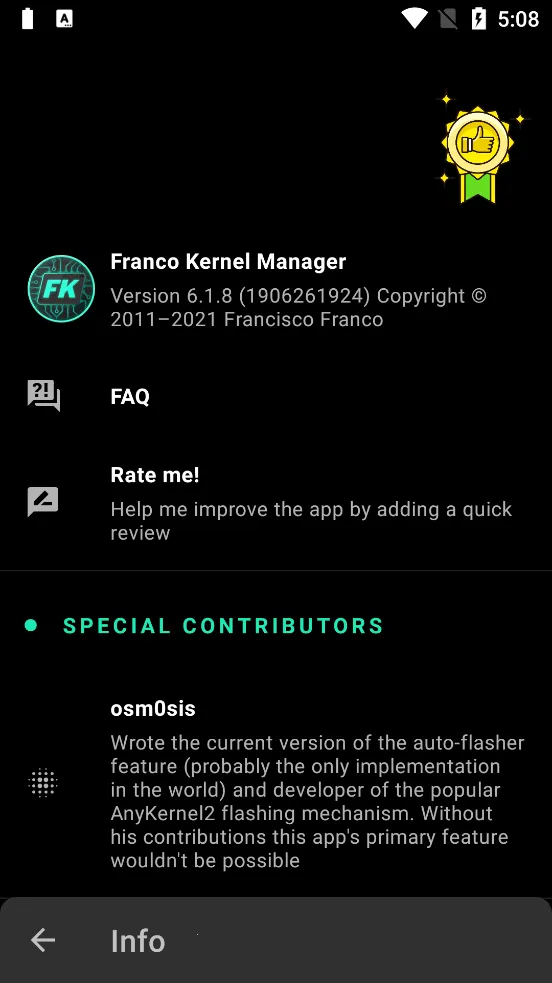 4. 支持自定义内核配置刷入,一键备份与恢复内核,确保系统稳定性,与FrancoKernel深度整合,自动检查新版本并提示更新。