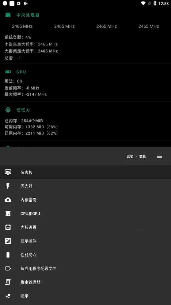2. 支持手动调节CPU、GPU的频率及调速器参数,突破硬件限制,实现超频或降频运行。