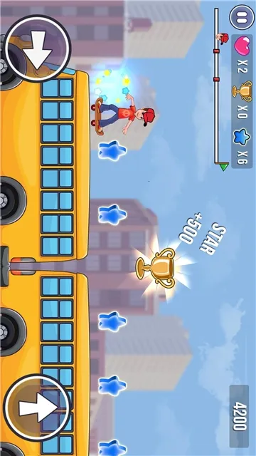 收集星星和奖杯能解锁关卡,还有各种道具,像加速鞋、护盾啥的,能帮你更轻松通关。每关有五条命,碰撞障碍就扣一条。另外还有自由模式和挑战模式,自由模式能重复刷积分练特技,挑战模式每周更新限时关卡,奖励很丰厚。这游戏操作简单,画面清新,玩起来轻松又刺激,绝对能满足你对滑板游戏的热爱,快去试试吧!
