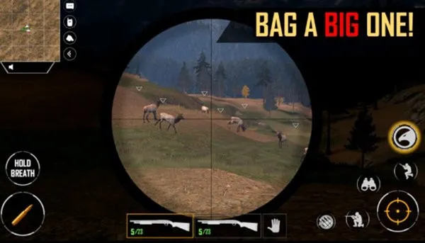 这款狩猎游戏给人带来了超真实的体验。以第一人称视角进入游戏,仿佛真的置身于野外。逼真的野外风光、超真实音效以及高清环境图,营造出极强的代入感,让人沉浸其中。