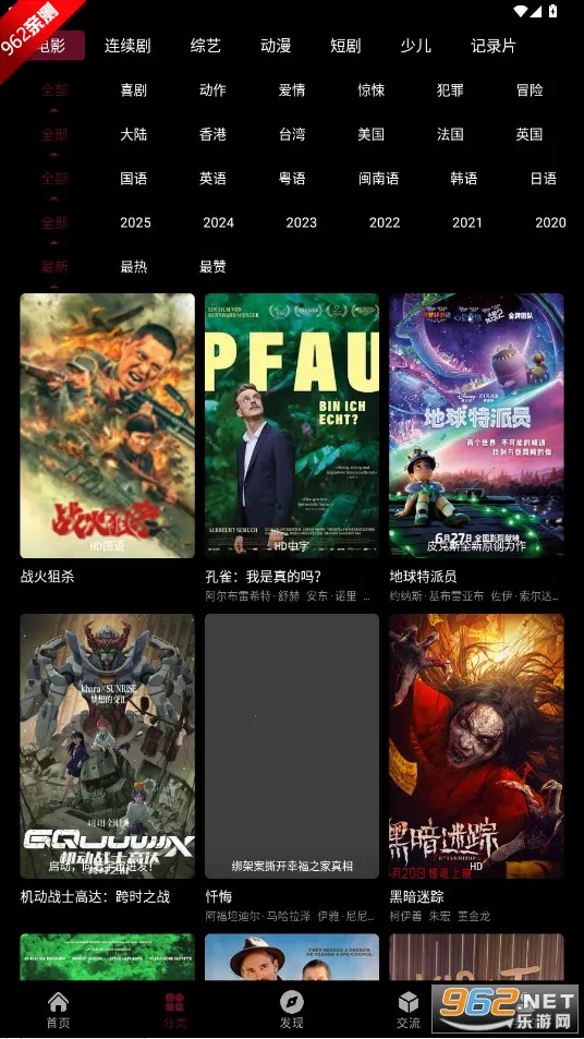 2. 类型丰富:涵盖动作、科幻、悬疑、爱情等众多类型,支持按年份、地区筛选,满足多样观影需求。