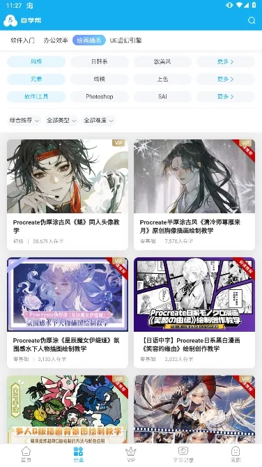 自学帮手机版真是一款不错的学习软件。它专注于小白教育,精选了各类优质全面的课程,能为学习者提供一站式贴心服务。这里课程丰富多样,涵盖多方面内容,无论是绘画还是其他兴趣技能学习,都能找到合适的课程。而且课程可永久无限学习,视频教程有免费和付费两种,满足不同人群需求。付费教程购买后可永久无限次观看,还支持离线缓存,没网络也能学。导师会认真批改作业,及时给出修改意见,帮助解决瓶颈。能针对个人情况制定学习计划,让学习更有效率。通过它,真的能轻松实现从入门到精通的学习提升,是个值得推荐的学习平台。