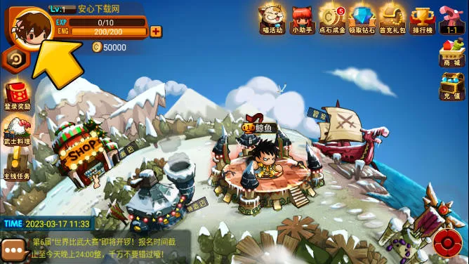 2、在系统指引后去装备新手武器后就可以先进行关卡挑战。