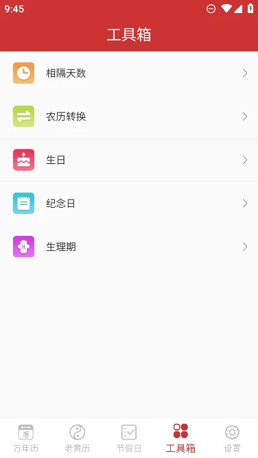 1、功能丰富实用:不仅能查询万年历、老黄历,了解每日宜忌、星座属相、放假调休、农历节气、节日信息等,还具备实用工具箱,可进行日期相隔天数计算、农历公历转换、生日提醒、纪念日提醒、生理期提醒等。