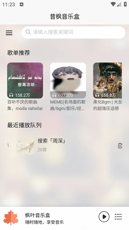 昔枫音乐盒是一款备受欢迎的音乐播放平台。它拥有海量曲库,涵盖各大音乐风格,能充分满足用户的听歌需求。其界面设计简洁美观,操作简单方便,一键搜索功能让用户轻松找到想听的音乐。