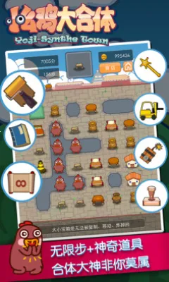 游戏中的小鸡角色造型可爱,还会跳起有趣的舞蹈,为游戏增添了不少欢乐。此外,游戏还拥有多种模式、神秘的通天塔建筑以及无限步数和各种道具,让玩家能够轻松成为合成高手。