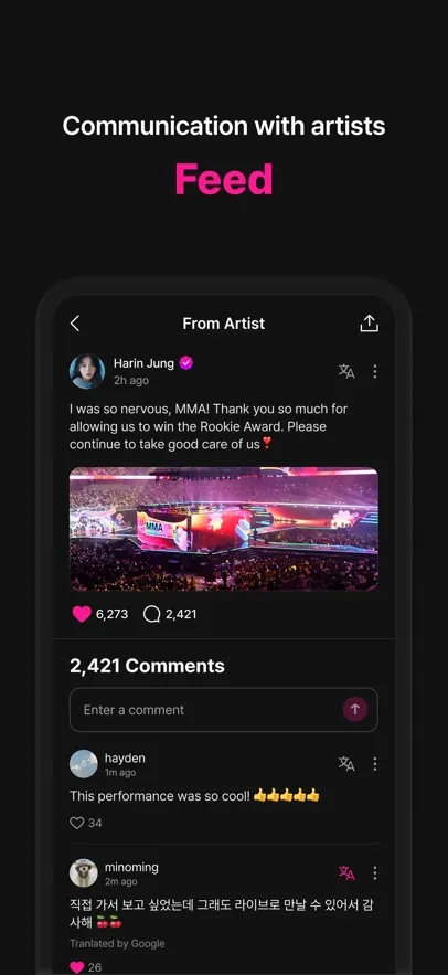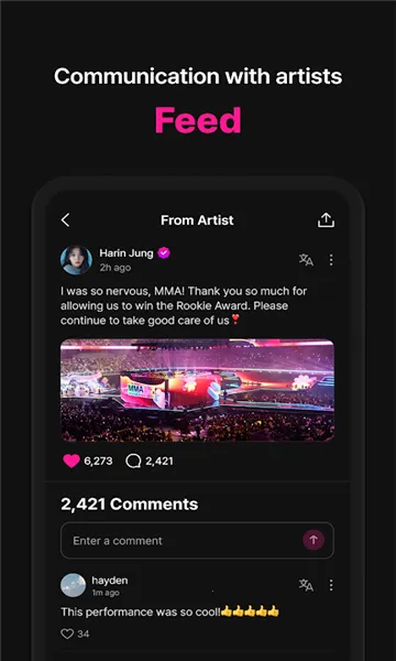 4. 功能丰富多样,聚合艺术家全部动态,支持观看现场演出直播,还有独家原创内容,会员更能参与专属直播与社区互动等。