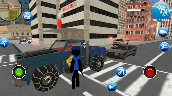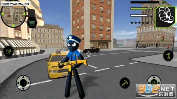 想体验当火柴人警察打击犯罪的快感吗?《火柴人警察英雄》就能满足你!在游戏里,你将化身火柴人警察,履行职责打击城市犯罪。通过滑动虚拟摇杆控制移动奔跑,右侧按键指挥攻击、发射武器和踢腿。接近汽车可点击车门上车,靠近目标自动进入攻击模式。点击右上角拳头图标能切换武器装备,左上方地图可定位急救包恢复体力。
