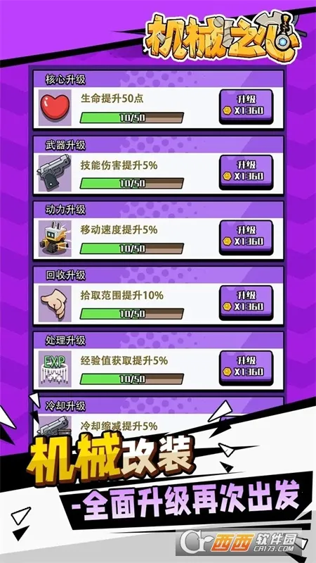 机械之心是卡通风格塔防割草游戏,玩家扮演维修机器人,在满是怪物的星球上,通过维修升级炮台消灭怪物。玩法简单,操作易上手,有多种星球场景、多样技能,还有roguelike要素,战斗刺激,策略性强。