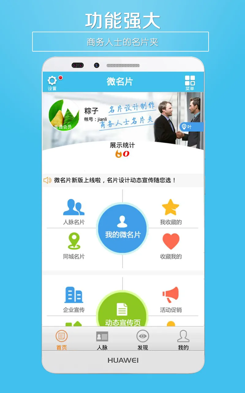 携带方便:微名片以电子文档形式存在,可使用手机随时转发,无需担心丢失,能让您随时随地展示个人或企业形象。