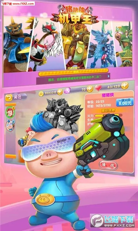 猪猪侠机甲王是正版授权的3D动作射击手游,以猪猪侠对抗魔界入侵为背景。超Q画风,操作简单易上手,有豪华连招、机甲变身等玩法,还有专属养成与装备系统,带来热血战斗体验。