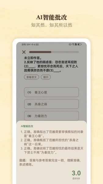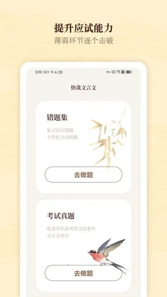 3. 支持刷题训练,提升应试能力:可不断刷题学习,帮助用户了解各个古文知识点,有效提升应试能力。