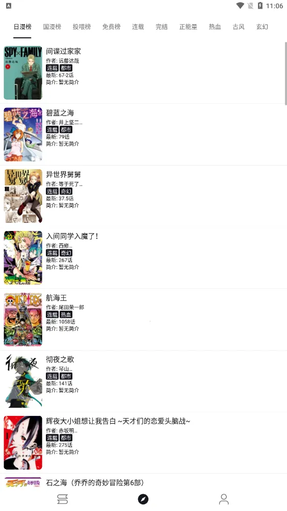 泼辣漫画是一款超棒的漫画阅读软件。它的漫画资源极其丰富,各种类型应有尽有,不管是热门的日漫、国漫,还是小众的其他类型漫画,都能轻松找到。而且资源更新速度超快,基本每天都有新章节。软件界面简洁直观,分类清晰,搜索精准,通过关键词、作者、标签等多种方式都能快速定位心仪作品。阅读体验也很棒,支持全屏,画质清晰,加载速度快,还没有广告干扰,能让用户尽情享受纯粹的阅读乐趣。最重要的是,所有漫画免费,真正实现了让用户低成本畅游漫画世界,无需为付费烦恼,是漫画爱好者不可多得的宝藏软件。