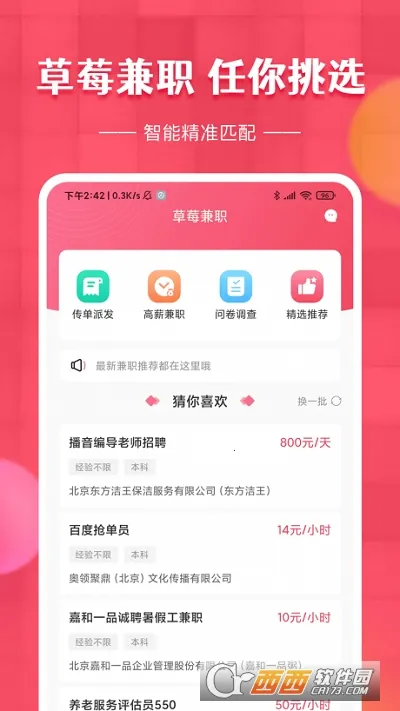 草莓兼职是一款超适合学生的兼职app。它提供各种日结秒付费的兼职岗位,能让你轻松找到高薪又轻松的工作,拥有全新且有趣的岗位体验。