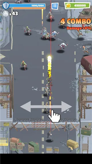 《世界末日幸存者》怎么玩?超简单!进入游戏直接点击就能闯关。通过左右移动射击消灭僵尸,射击时还能选技能,有时有意想不到的效果。升级可提升射速、火力和子弹数量,闯关更轻松,还有连击效果,动感音乐超带感。