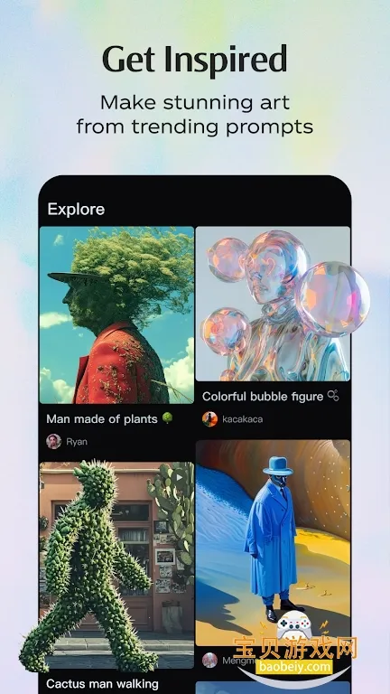 3. 灵感丰富:内置创意社区,用户可浏览他人作品获取灵感,并且支持多种风格模板与艺术滤镜应用,为创作带来更多灵感与可能。
