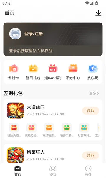 星玩2026官方最新版本是一款手游资源平台,有海量免费游戏,涵盖多种类型,更新快。资源经审核,免费且有详细介绍。还有礼包优惠券、社区功能,界面简洁,新用户有首充资格,登录领金币,充值优惠,星钻VIP权益丰富。