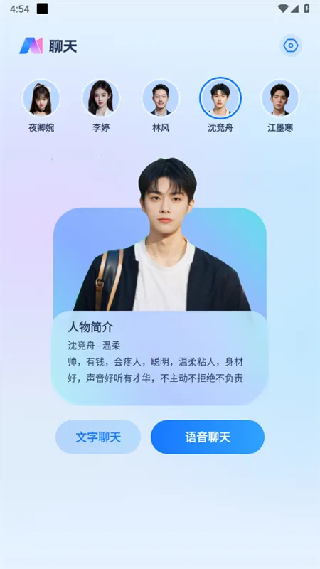 1. 角色多样:提供多款角色供选择,像温柔男、大气质霸总、甜美妹妹、知性御姐等,满足不同喜好。