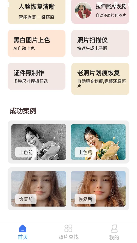 强力照片恢复大师是一款超棒的手机照片恢复工具。它功能强大,能解决不少问题。可以恢复误删的照片,不管是相册、微信还是QQ里误删的都能搞定。还能进行照片色彩增强,让图像更鲜明;给黑白照片上色,恢复生动画面;拉伸照片恢复,自动识别过度拉伸的照片并恢复正常比例;深度扫描手机中的照片视频等数据,导出恢复到相册;导出微信QQ中的照片视频语音数据,一键批量导出;也能将扫描到的数据批量一键永久删除。操作简单,无需复杂设置,不用依赖电脑,轻触几下就能扫描找回照片。而且以隐私安全为首要考量,恢复过程数据仅限用户可见。最新版本还优化了恢复速度,能更快帮你找回珍贵照片,赶紧试试吧!