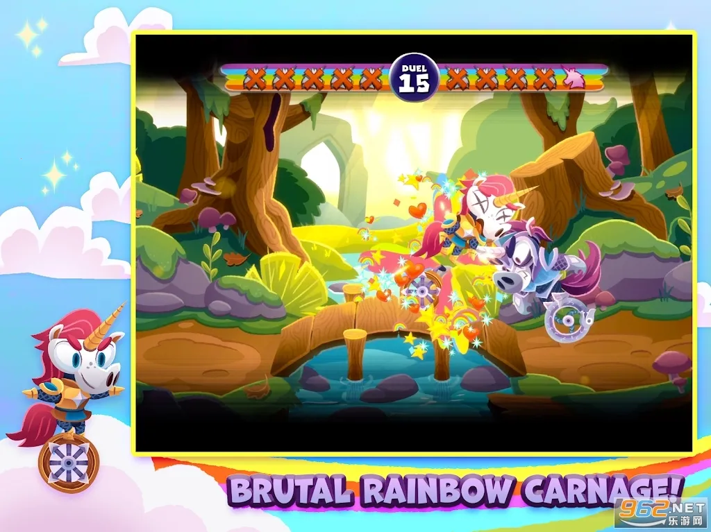 独轮车上的独角兽是休闲闯关游戏,玩家化身独角兽骑独轮车对战。玩法独特,操作简单易上手,色彩绚丽。有多种角色可选,关卡设计多样,还有冒险对决等模式,不断更新,如v1.2.0版本有新角色、关卡等。