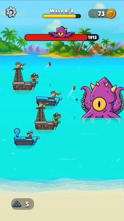 1、快节奏策略冒险:玩家能合并船体部件、海盗与火炮打造战舰,抵御一波又一波海洋生物,在色彩缤纷的卡通世界中激战,上手简单却策略丰富。