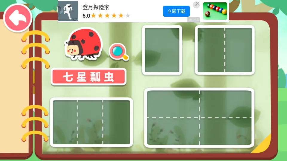 2、益智昆虫图鉴:成功找到昆虫可获贴纸,根据外形动手动脑完成拼图,拼图还有惊喜,助宝宝认知昆虫外形。