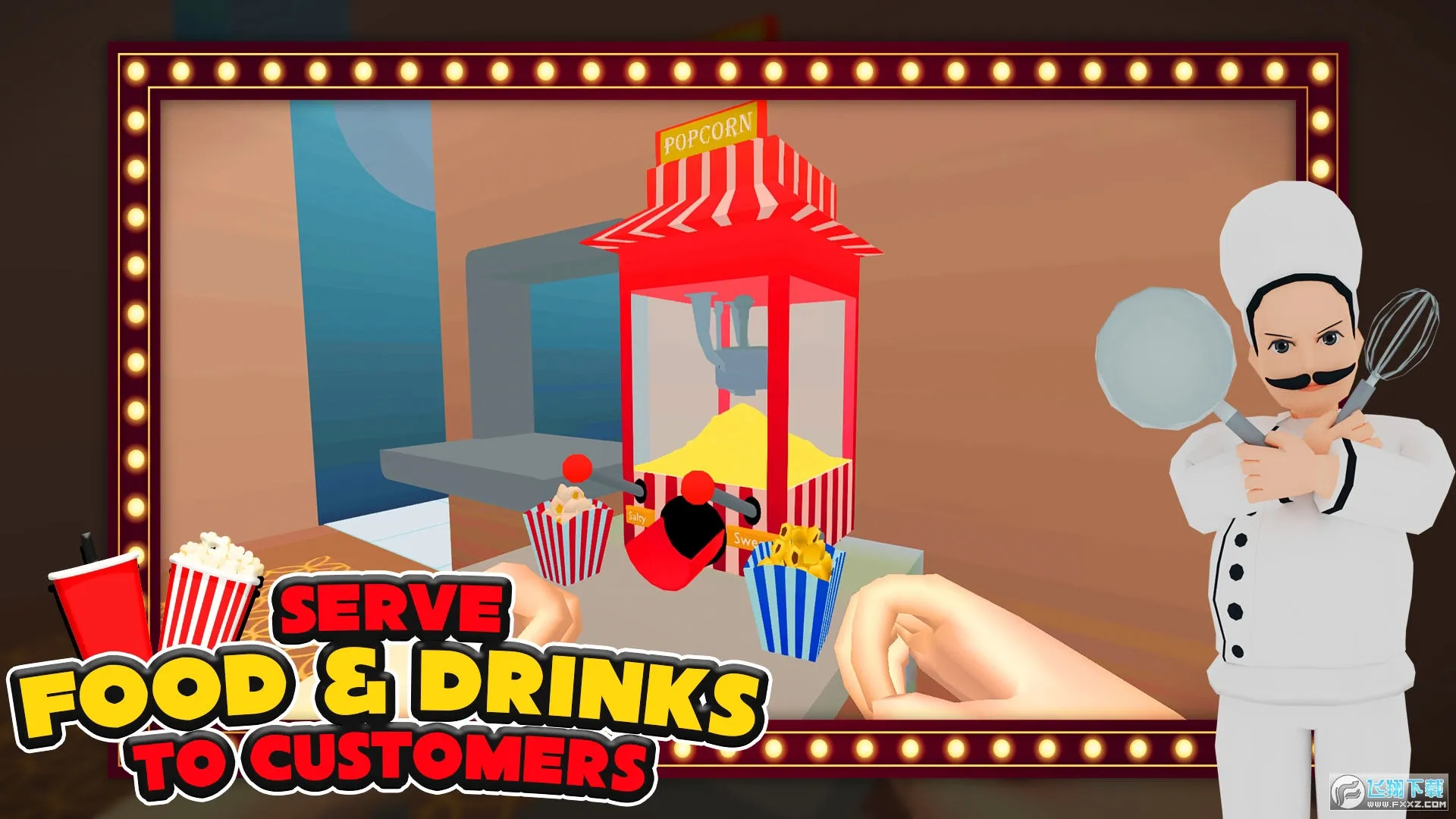 3. 模拟真实电影院玩法,玩家可充当观众,携带电影券和爆米花享受观影。