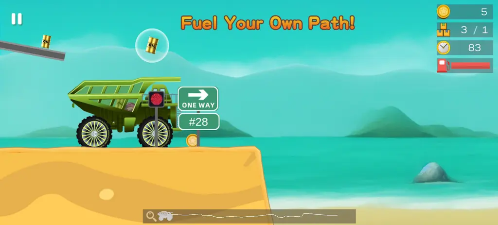 3. 丰富改装系统:赚取金币可用于改装卡车性能或更换专业零部件,随着关卡提升,高级卡车将配备更大容量的货厢。