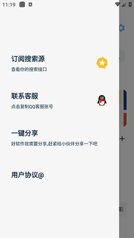 1、进入软件后,点击右上角的设置选项,然后选择订阅搜索源。
