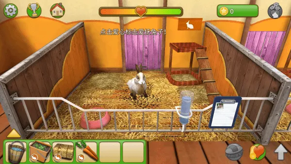 2. 精心照顾与养成体验:你需要精心照顾每一种宠物,让它们心情变好,从而被人收养。比如给兔子选择食物放在碗里、倒水在饮水机里、抚摸兔子、添加干草等,能真切体验照顾宠物的全过程。
