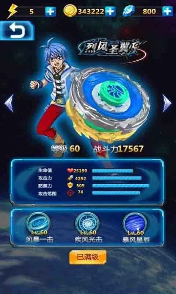 3、角色陀螺丰富。游戏中有四个角色,每个角色都有自己的属性与特殊陀螺,攻击方式不同,玩家可根据喜好选择英雄上阵,还能对角色强化升级、进行陀螺合成进阶。