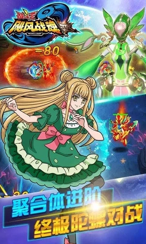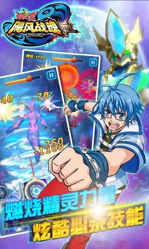 1. 日系动漫风格:以外星生物入侵地球为背景,采用竖版2D画面,日系动漫风格呈现。主角与原版人物一致,陀螺样式和战斗光效保持动漫效果,色彩浓厚,战斗热血激情,陀螺旋转特效耀眼。