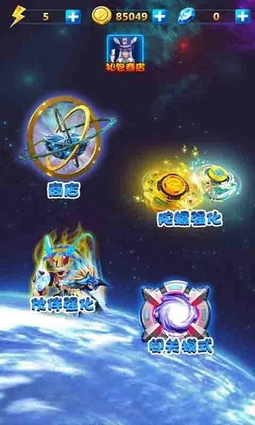 3. 丰富的角色与陀螺系统:有四个角色,每个角色有自己的属性与特殊陀螺,攻击方式不同。玩家可根据喜好选择英雄上阵,还能强化升级角色、提升陀螺属性,甚至进行陀螺合成进阶。
