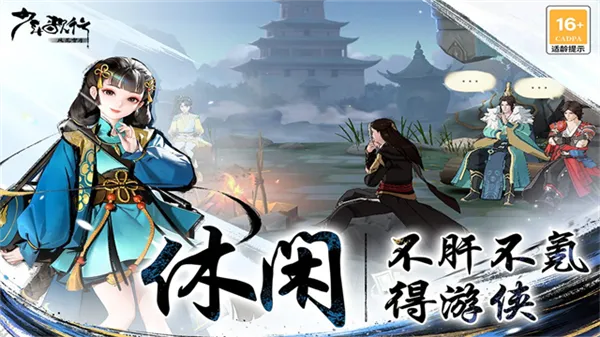 2. **轻松放置,策略卡牌**:采用休闲放置卡牌玩法,不肝不氪就能收集培养众多侠客。开放上百种侠客阵容搭配,玩家可自由组合,策略战斗深度无穷,体验以策制胜的快感。