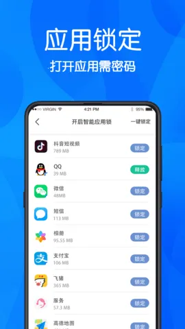 操作简单便捷,直接添加要上锁的应用,一键锁定常用软件,有效保护隐私,避免不必要麻烦。