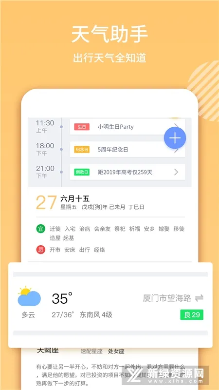 彩虹日历天气app官方免费版v1.1.1彩虹日历天气app是一款日历和天气预报相结合的生活服务软件,将日历与天气预报相结合可以在预告每天天气情况、空气质量、气象分布等气候情况的同时,对所要做的事在日历上做记录和修改,一目了然,非常方便,感兴趣的就来下载吧!彩虹日历天气app介绍:彩虹日历天气