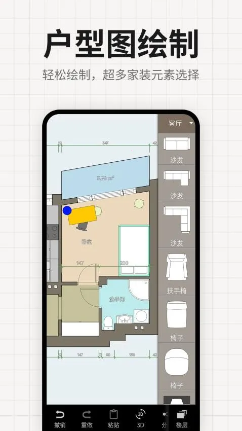 装修设计平面图是深圳市马步多多科技有限公司推出的移动设计软件。用户能随时随地平面设计,功能全,支持多种格式导出,有3D查看效果。具备CAD画图、文件打印等功能,还有便捷编辑等特色亮点,免费且使用方便。