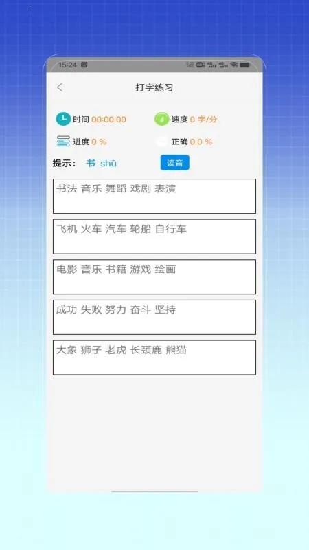2、实时统计:打字练习时,能实时呈现速度与正确率统计,让用户清晰知晓自己的练习状况。