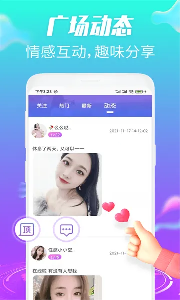 在这里,能与志同道合者分享生活、交流梦想,轻松开启浪漫旅程,通过精彩动态展示和互动交流,提供真实高效社交平台,助力更快遇见对的人。