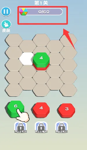 4、游戏采用六角形拼图设计,玩法简单易上手,通过连接相同颜色六角块消除,挑战反应速度与策略思维,关卡升级难度增加,需灵活运用道具和策略完成任务。