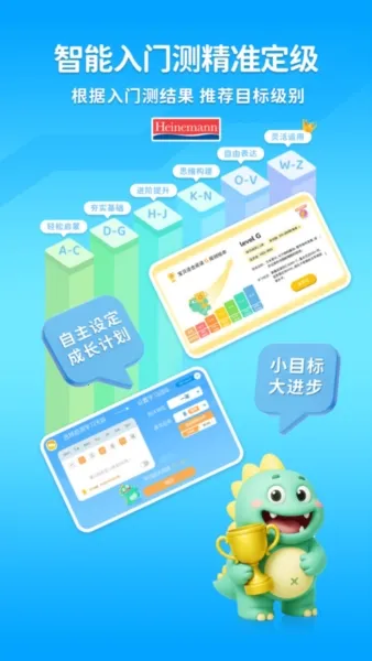 海尼曼F是一款出色的英语学习平台。它拥有1300本美国原版绘本,通过科学分级阅读体系,助力不同年龄段孩子掌握英语知识。上千种英语故事文章,能让孩子按阶段找适合自己的内容。亲子合作互动玩法超棒,家长陪伴孩子学英语,增进亲子关系。学习过程中对英语口语训练效果显著,能提升口语能力,掌握标准发音方法,提高表达水平。专属阅读陪伴,老师实时一对一点评纠音;海量阅读资源,一键畅读;智能AI分析推送适合难度资源。还有个性化定制阅读计划、在线阅读绘本、加入书架、自动记录数据、智能推送相关绘本、下载绘本离线阅读等贴心功能,为孩子英语学习提供全方位支持,是个不可多得的学习好帮手。