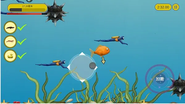 2、玩法多样:游戏拥有创新的体感操控系统,通过手机重力感应实现精准移动,模拟真实海洋生物的游动轨迹与捕食动作。还设有多种玩法,如生存模式、限时挑战关卡、首领对战玩法、收集系统等。