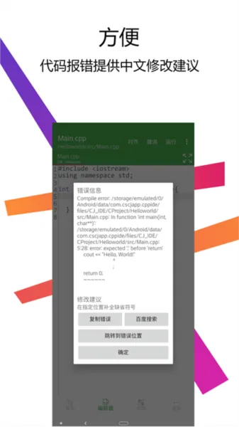 想知道有哪些好用的cpp编译器?别愁啦!给你推荐这款超棒的cpp编译器app。它是专门为学C代码编写与编译的小伙伴打造的。功能超强大,支持C语言与C混合编译,代码能项目级管理。安装它就能直接在手机上编写、编译运行C代码,无需其他多余安装工具。有完整C入门教程,边看边调试。报错时有中文提示还能直接跳到错误位置。还有多语言支持、多皮肤可选。随时随地能写代码验证课堂所学,海量离线教程随意看。智能代码补全减少打字烦恼,错误提示小精灵及时告知错误。云同步功能换手机也不怕,常用代码可收藏。一键式编程体验,无需繁琐设置,安装即开即用,让你轻松玩转C编程,赶紧试试吧!