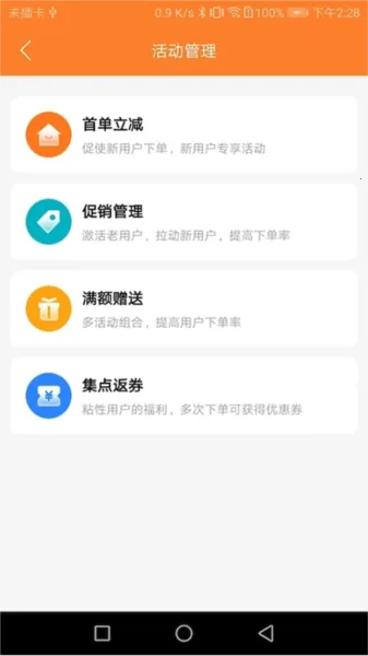 2、在线管理店铺:可全面管理店铺的营业状态、接单时间及营销推广等事项。